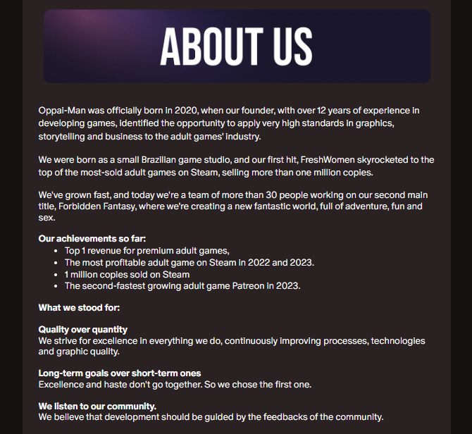 After detailing your game and your project, it's time to tell the player a little about yourself or the team behind the development.