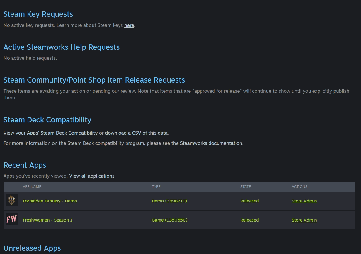 Log in to your Steam partner account using the link below: https://partner.steamgames.com/home