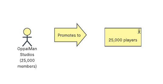 When we motivate 10 other developers with an average Patreon page of 10,000 members, together we can promote more games to 100,000 players.