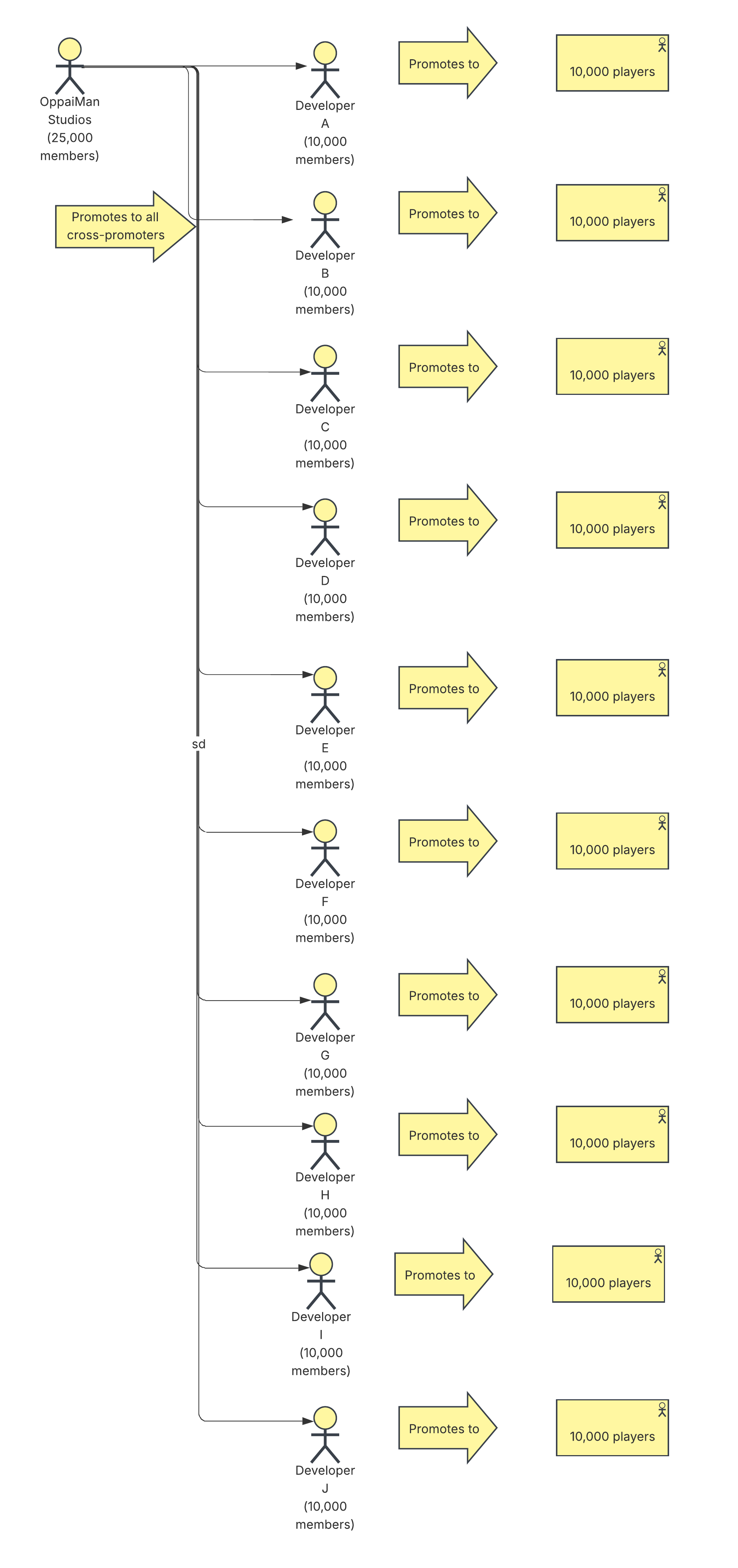 Small developers might think they are being ignored by us, but we are amplifying our reach from 25,000 to 100,000 members, so the cross-promotion squad can promote even more small developers, which is the goal of the platform.